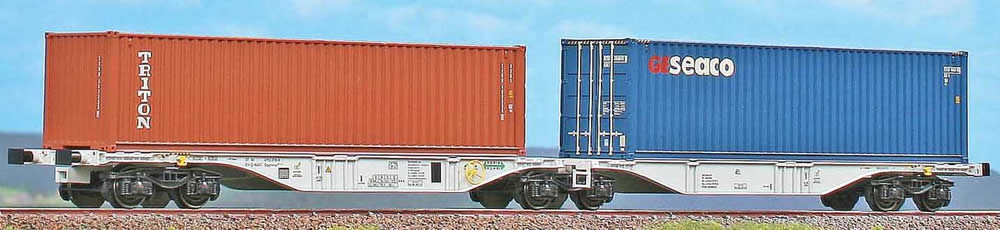 40254: ARTICULATED CONTAINER CAR TYPE SGGMRSS 90 OF ADRIA KOMBI LOADED WITH CONTAINERS