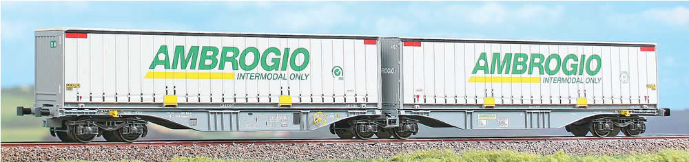 40264: ARTICULATED CONTAINER CAR TYPE SGGMRSS 90 OF AMBROGIO LOADED WITH CONTAINERS