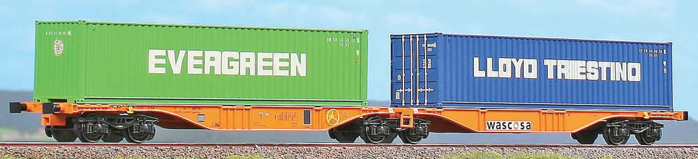 Articulated Container car type Sggmrss 90 of Wascosa loaded with containers