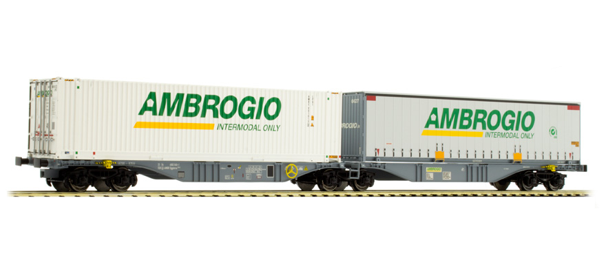 40283: ARTICULATED CONTAINER CAR TYPE SGGMRSS 90 OF AMBROGIO LOADED WITH CONTAINERS