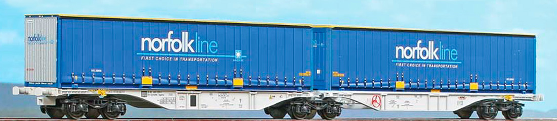 Articulated Container car type Sggmrss 90 of HUPAC loaded with containers