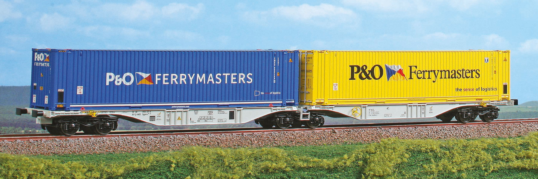 40288: ARTICULATED CONTAINER CAR TYPE SGGMRSS 90 OF CROSSRAIL LOADED WITH CONTAINERS P&O