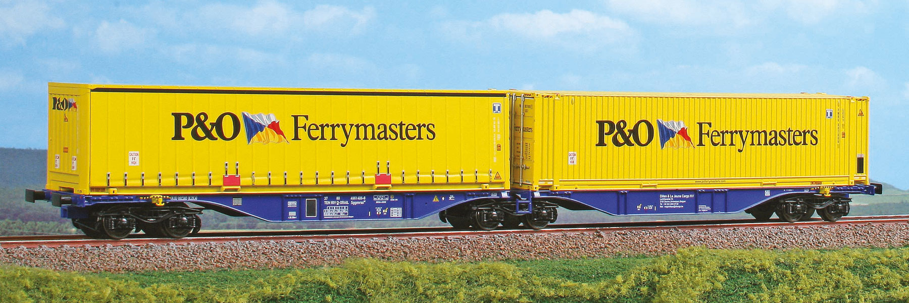 Articulated Container car type Sggmrss 90 of Crossrail loaded with containers P&O