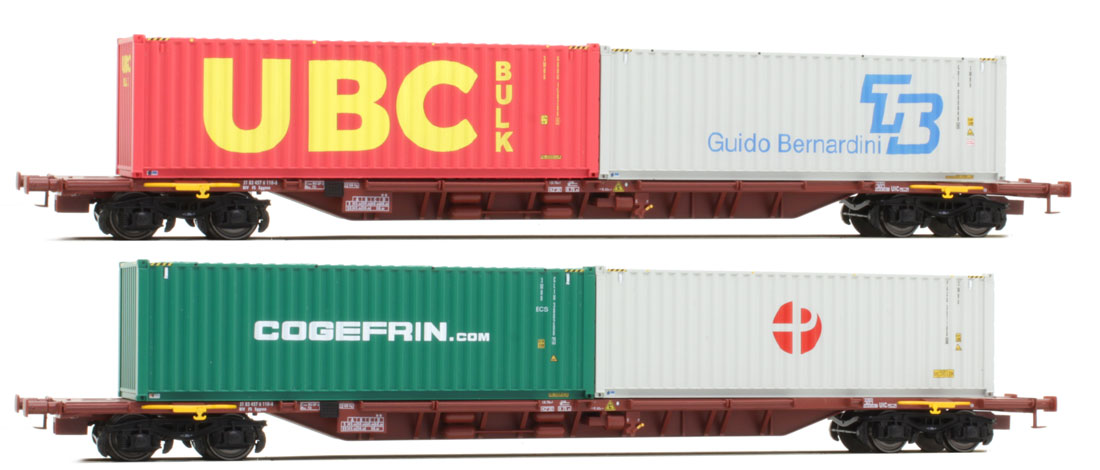 Set of 2 Container transport cars type Sggnss loaded with containers