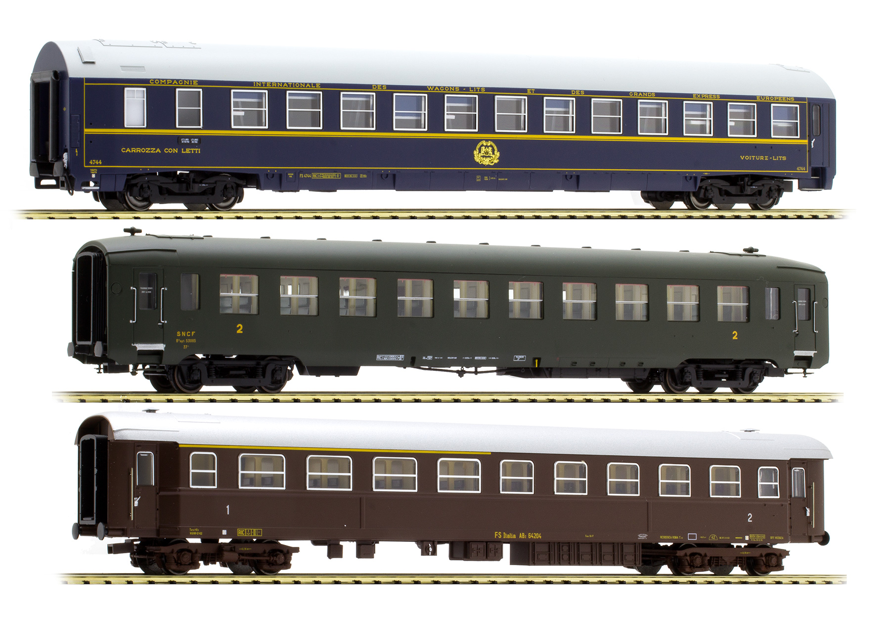 Set consists of Sleeping car of CIWL , passenger car 1st/2nd class FS and passenger car 2 class SNCF