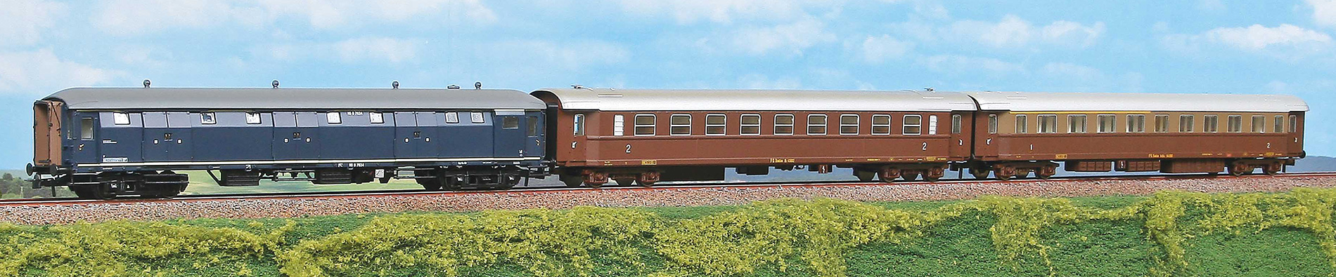 Set consists of NS luggage car (made by Artitec), FS passenger car 2nd class type Bz 45000 and FS passenger car 1st/ 2nd class type ABz 64100.