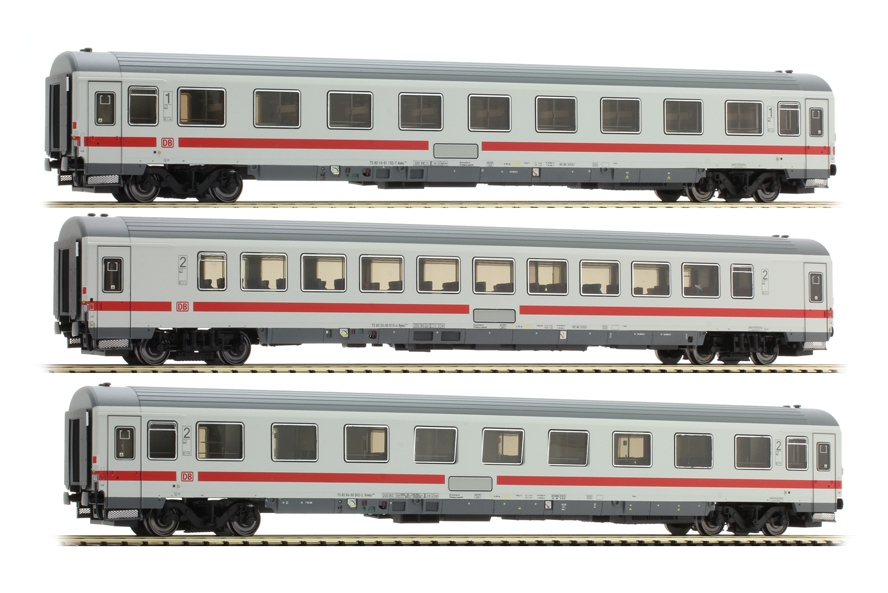 set consists of passenger car 1st class type Avmz, passenger car 2nd class type Bvmkz and passenger car 2nd class type Bpmz