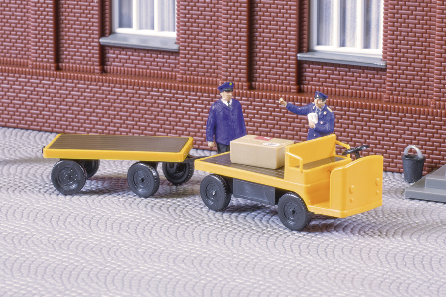 The vehicle has been modelled on the Balkancar truck. It is widely used as platform truck for internal shipments. Electric trolley 27 x 10 x 11 mm Trailer 27 x 10 x 7 mm