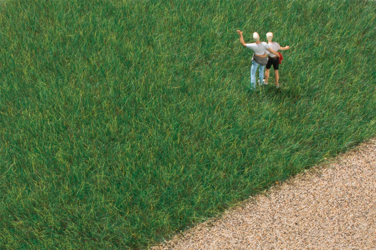 This range of grass fibres in various shades and lengths enables you to create very realistic landscapes. We recommend using a standard flocking machine to apply the fibres. The electrostatic charge will stand the fibres upright. 50g