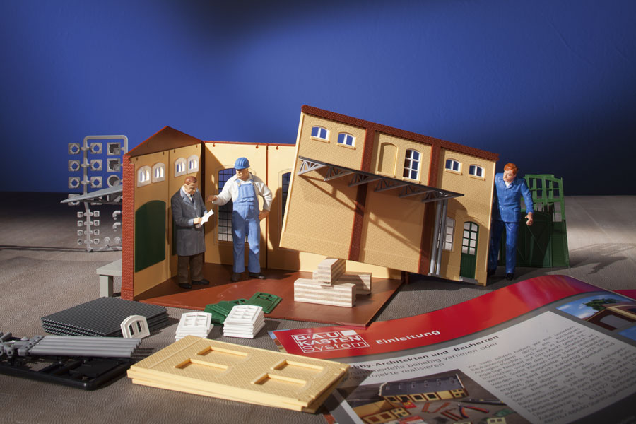 Discover the many options you have with the Auhagen modular system! All you need to do is decide which of the three buildings are to be built with the content of this model kit. Maybe you even create your own version. Spare parts will be left over in any case! This will spark your imagination and enable you to plan a completely individual building of your own. The enclosed brochure contains advice and tips. The copy template with the shopping list which is also enclosed will give you planning security. There are also seminars offered for the Auhagen modular system which is unique in Europe. For more detailed information please refer to www.auhagen.de. Freight shed 154 x 198 x 103 mm, Engine shed 154 x 114 x 103 mm, Small factory 219 x 158 x 103 mm.