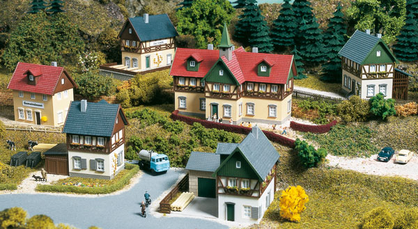 set consists from: School. craftsmans house. house with garage. house with shed. village Inn and village hall