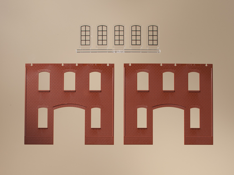 2 walls with window and gate opening without toothed frieze. 5 windows for the ground flour, printed.