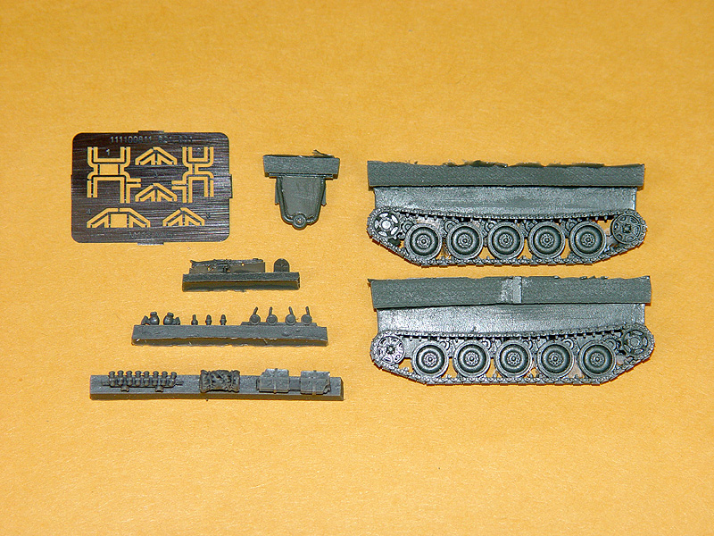 Armored personal carrier M113 A1G. Unassembled plastic model kit superdetailed with resin and photo-etched parts. Pictured assembly instructions are included.