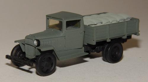 GAZ-MM WWII Military truck with single head light and with load. This is a hand-made model built from resin and brass parts and it's fully detailed and painted.