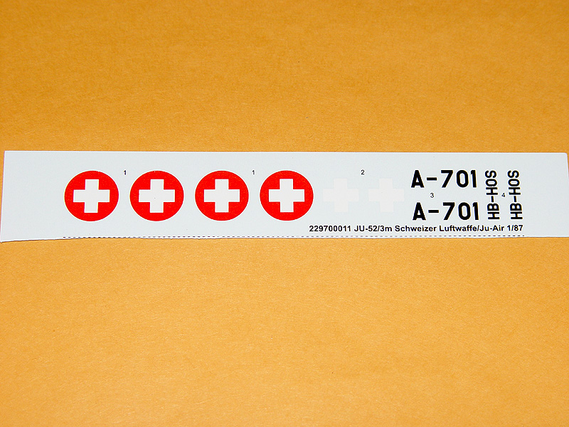 Ju-52/3m of Swiss Air Force. Unassembled plastic model kit.