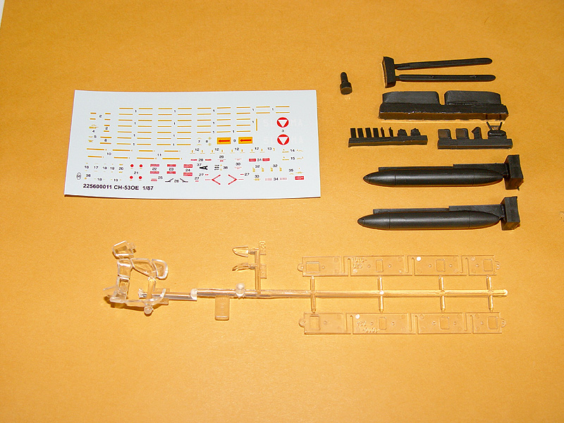 Sikorsky S-65 OE of the Austrian Air Force. Unassembled plastic model kit with super detailing resin parts. Decals include full stencil.