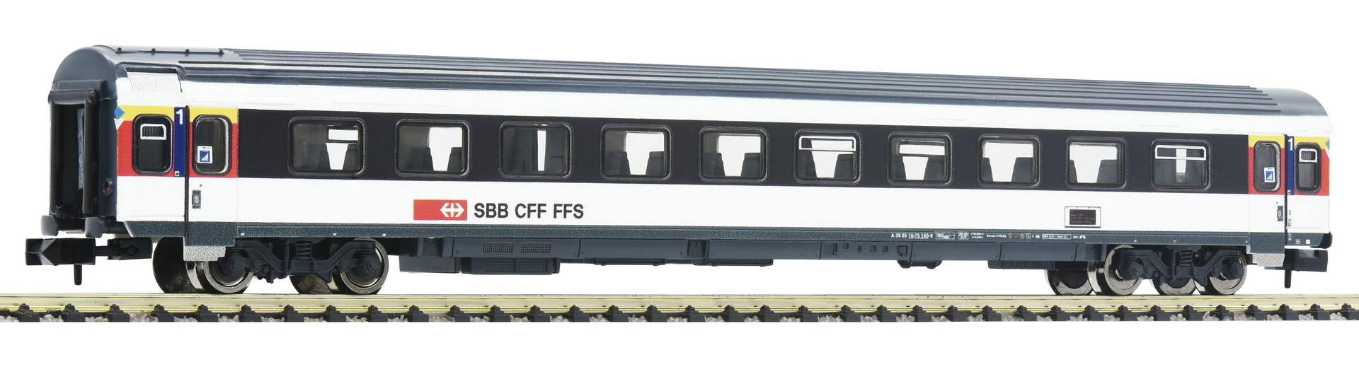 The model is painted with the current ICN colours. The model has interior furnishing and is equipped ready to install interior lighting. Coupler pocket according to NEM 355 standards and close coupling mechanism. Reissue model 2019 with new running number.