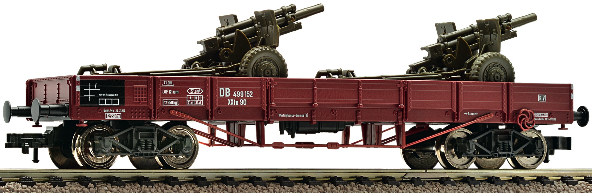 526204: 4 AXLE FLAT CAR (FORMER US ARMY) LOADED WITH 2 M 105
