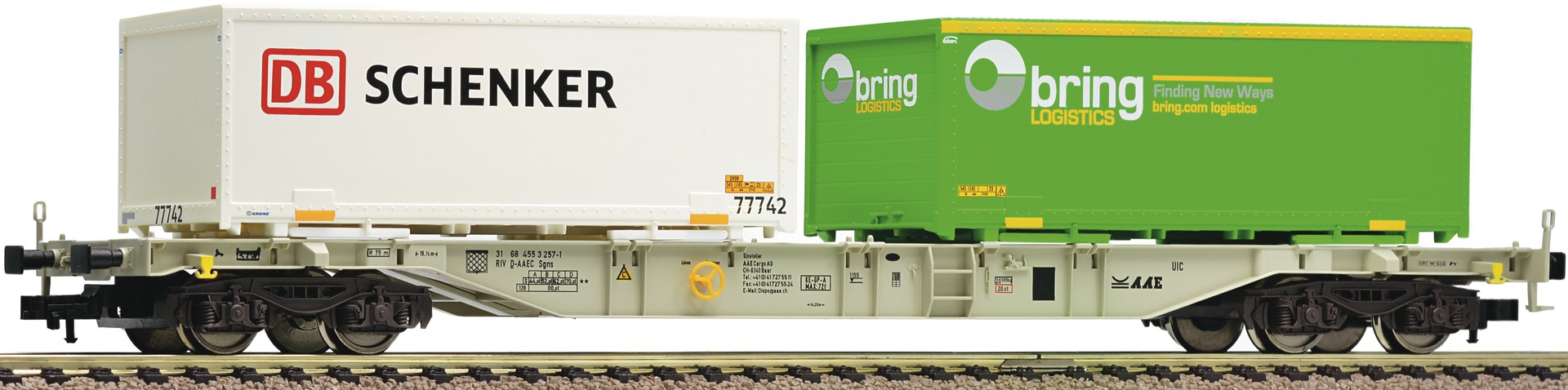 4 axle Flat car loaded with 2 containers