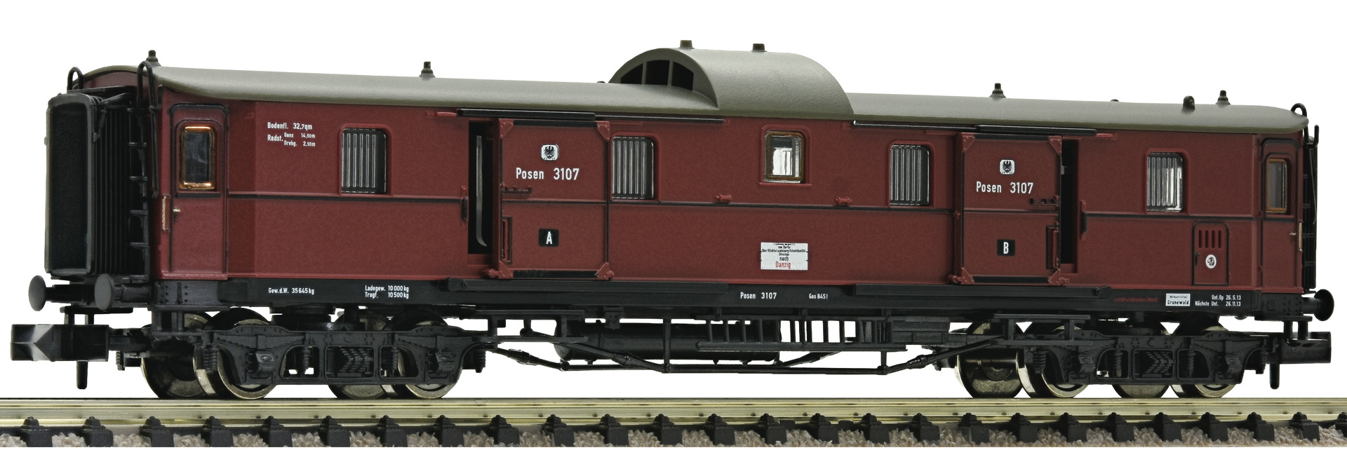 Model in true to the original lettering and livery. In-plane applied windows and 4 moveable sliding doors. The furnished model is ready equipped to install interior lighting. Coupler pocket according to NEM 355 standards with close coupler motion link.