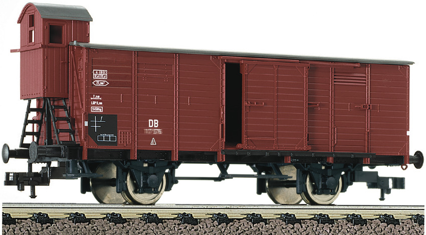 Model with two moveable sliding doors on each side. Coupler pocket according to NEM 362 standards with close coupling mechanism. Vehicle with spoked wheels and two moveable sliding doors.