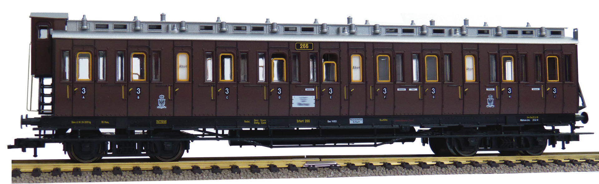 Model with interior design. In-plane applied windows. True to the original livery and lettering. The model is ready equipped to install interior lighting. Coupler pocket according to NEM 362 standards.