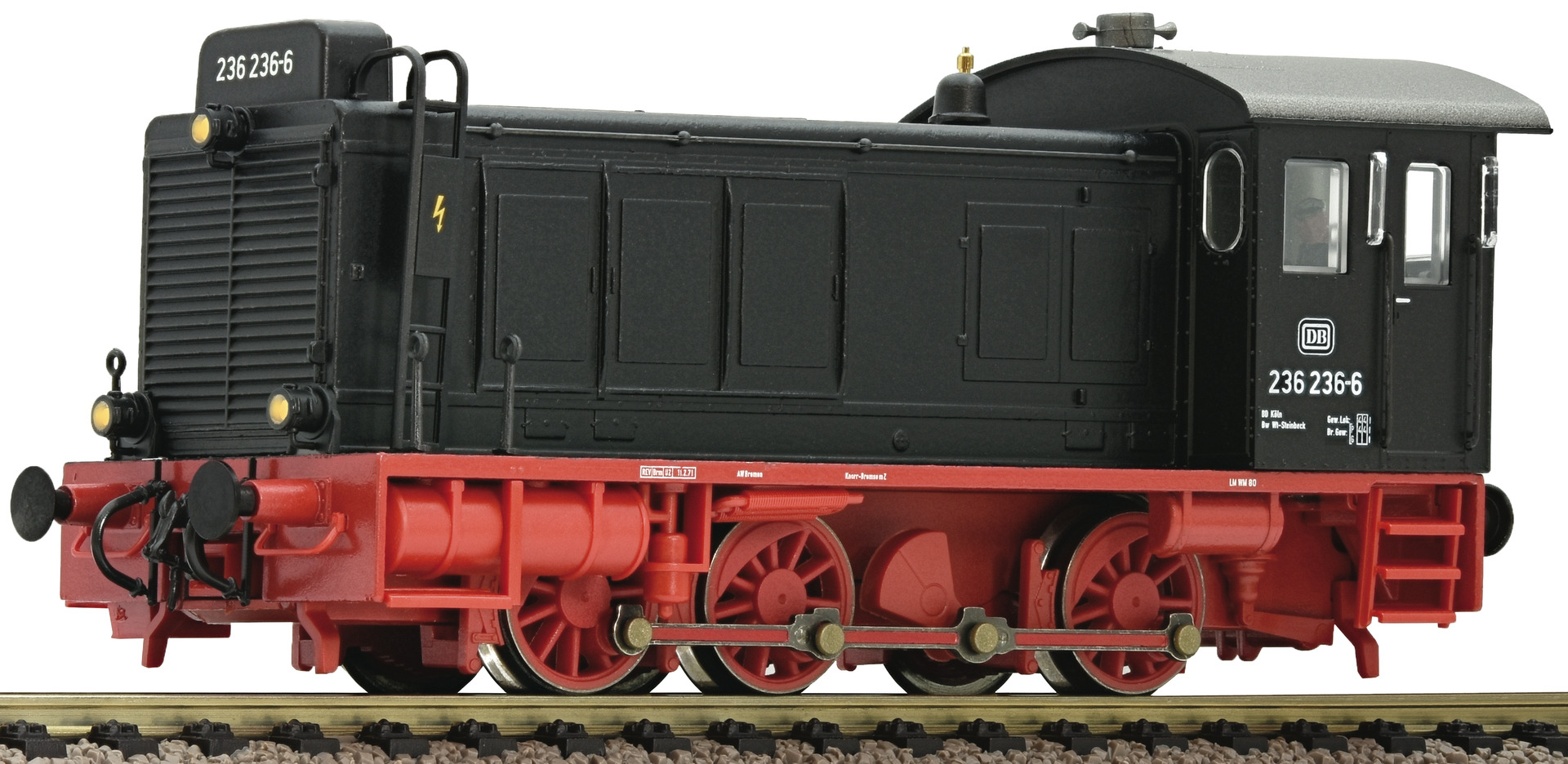 Motor with flywheel. Drive on all three axles. Dual headlights that change with the direction of travel. Interface according to NEM 652 standards. Coupler pocket according to NEM 362 standards with close coupling mechanism.