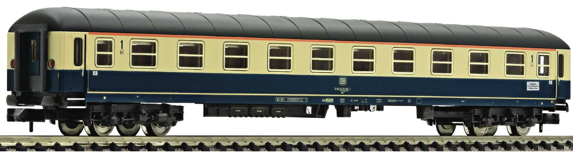 Express train passenger car 1st class type Am203<br /><a href='images/pictures/Fleischmann/Fleischmann-864103.jpg' target='_blank'>Full size image</a>