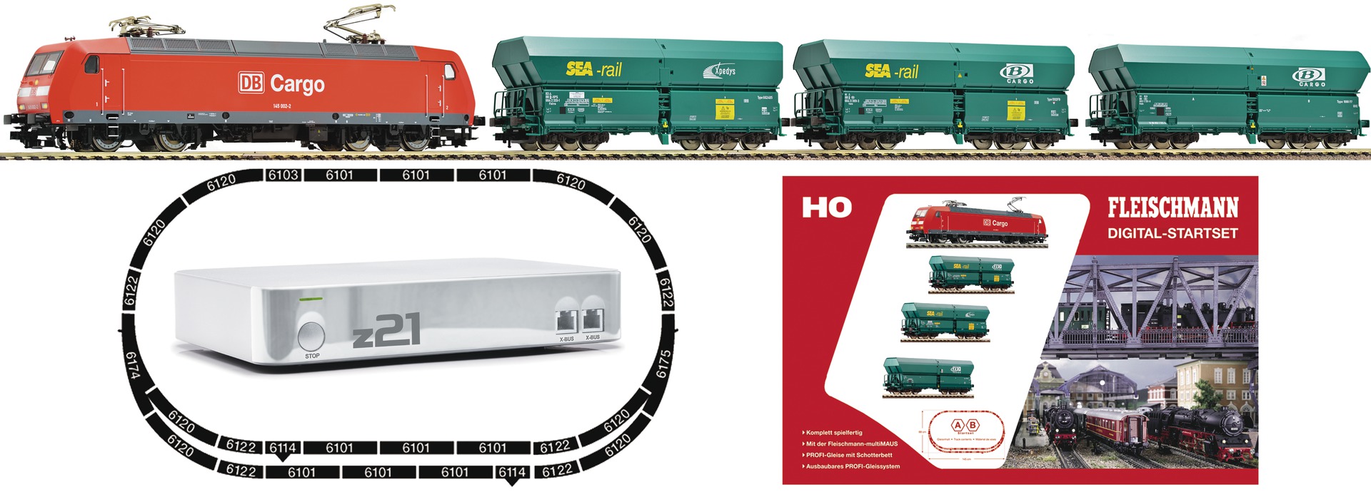 631387: FREIGHT TRAIN DIGITAL STARTER SET WITH ELECTRIC LOCOMOTIVE BR 145 OF THE DB CARGO