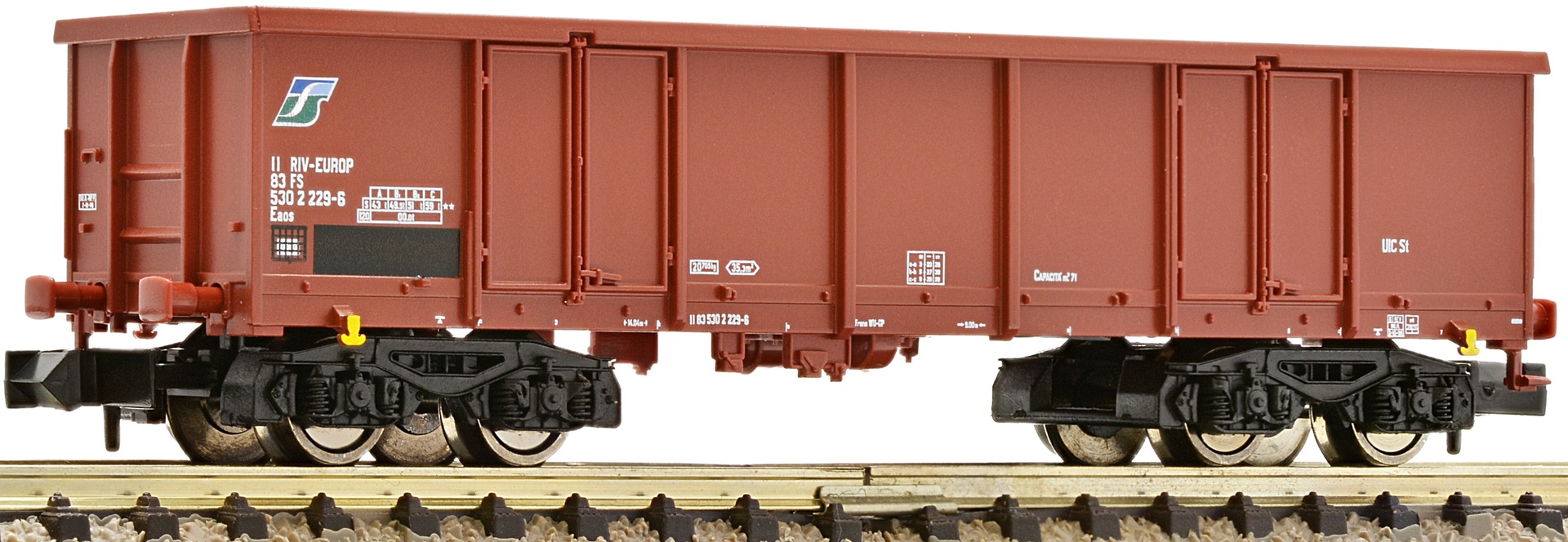 Model with coupler pocket according to NEM 355 standards and close coupling mechanism.