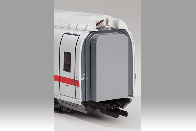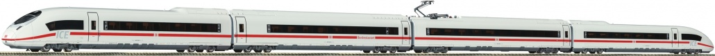 Model: The 4-piece basic set contains 1 1st class end wagon, 1 1st class passenger car converted with restaurant, 1 2nd class center coach and 1 2nd class end wagon. The standard set can be supplemented with the item nos. 448101/448181/388101/388181 and 448201/448281/388201/388281 to a true to the original 8 part train set. Prototype: The series 407 is a high speed train from the ICE fleet that is presently under construction. The manufacturer of these trains is Siemens. The DB AG denotes the trains as the new ICE 3 even so they are for the large part a new development. The four system vehicles are scheduled for service in Germany, France, and Belgium. With 460 seats the 8-part ICE/series 407 is supposed to offer the same seating comfort as the ICE 3 with more seats. This is achieved by relocating several housing cabinets and to dispense with compartments in favour of high-capacity cars.