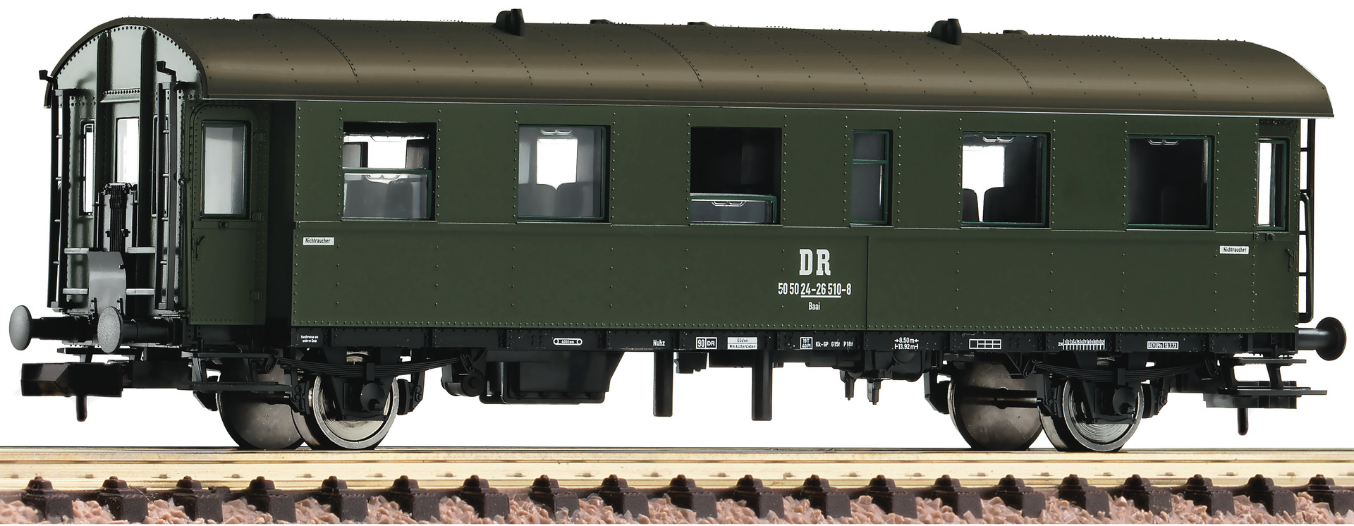 The wagon is equipped ready to install interior lighting. Coupler pocket according to NEM 355 standards.