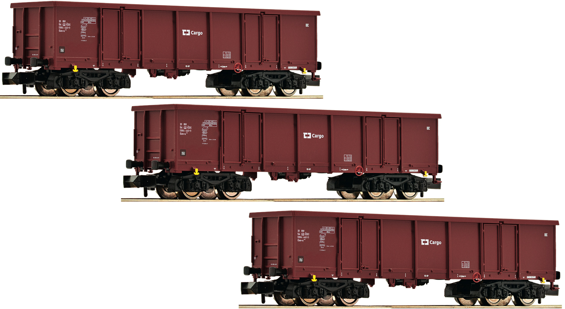 Close coupler pocket according to NEM 355 standards and close coupling mechanism. The wagons have different running numbers. Perfectly combinable with blocktrains. The gondolas can be used also in the international traffic.