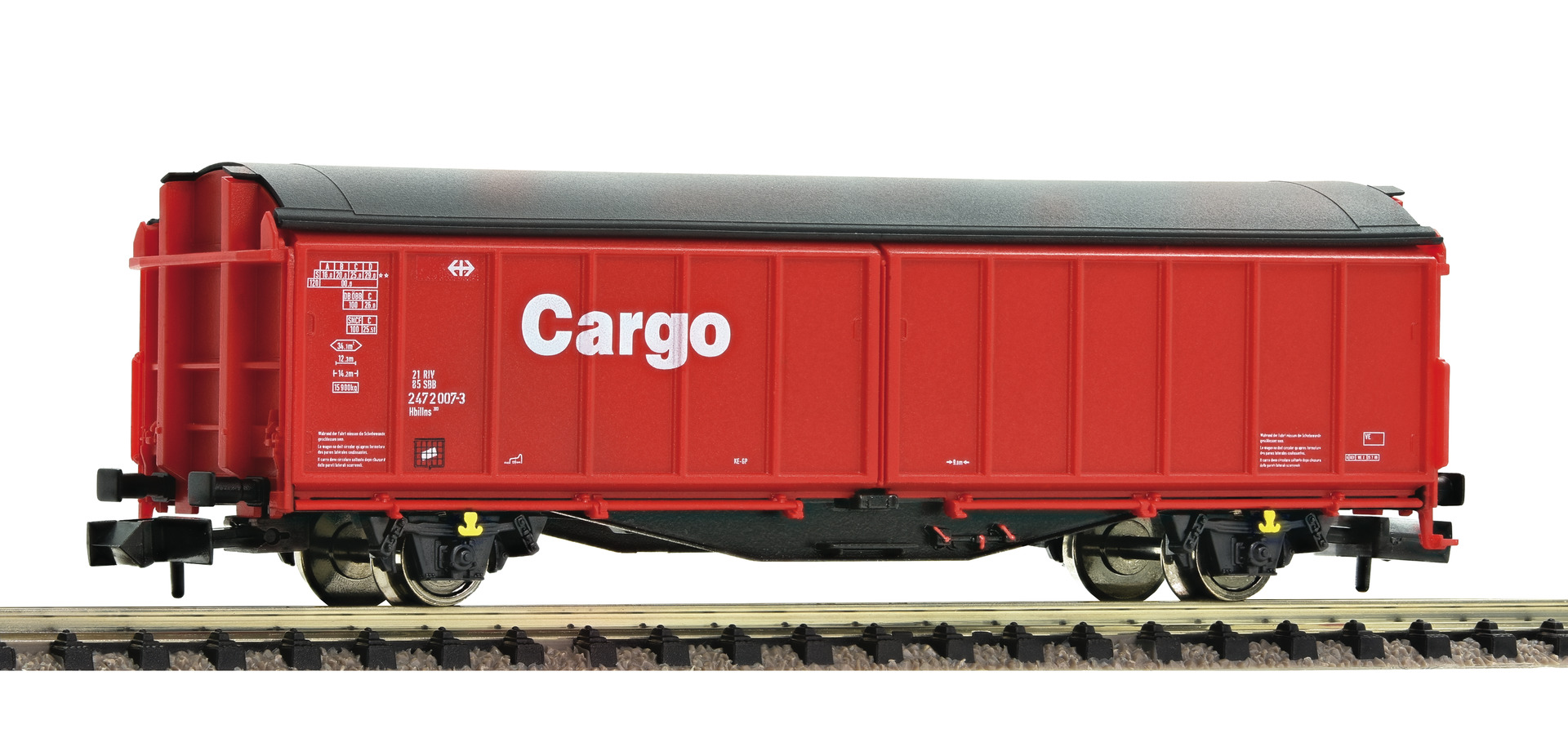 Sliding wall wagon of the DB Cargo hired out to the Swiss Federal Railways (SBB).