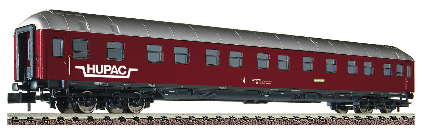 The model has interior furnishing and is equipped ready to install interior lighting. Coupler pocket according to NEM 355 standards and close coupling motion link. Prototype: The Hupac AG is a Swiss group which operates in the trans-Alpine freight traffic by rail. When HUPAC started cooperating with the company RoLa, it had not enough sidecars. So the company hired sleeping cars of the type WLABmh174 from the DB / DSG for the truck drivers.