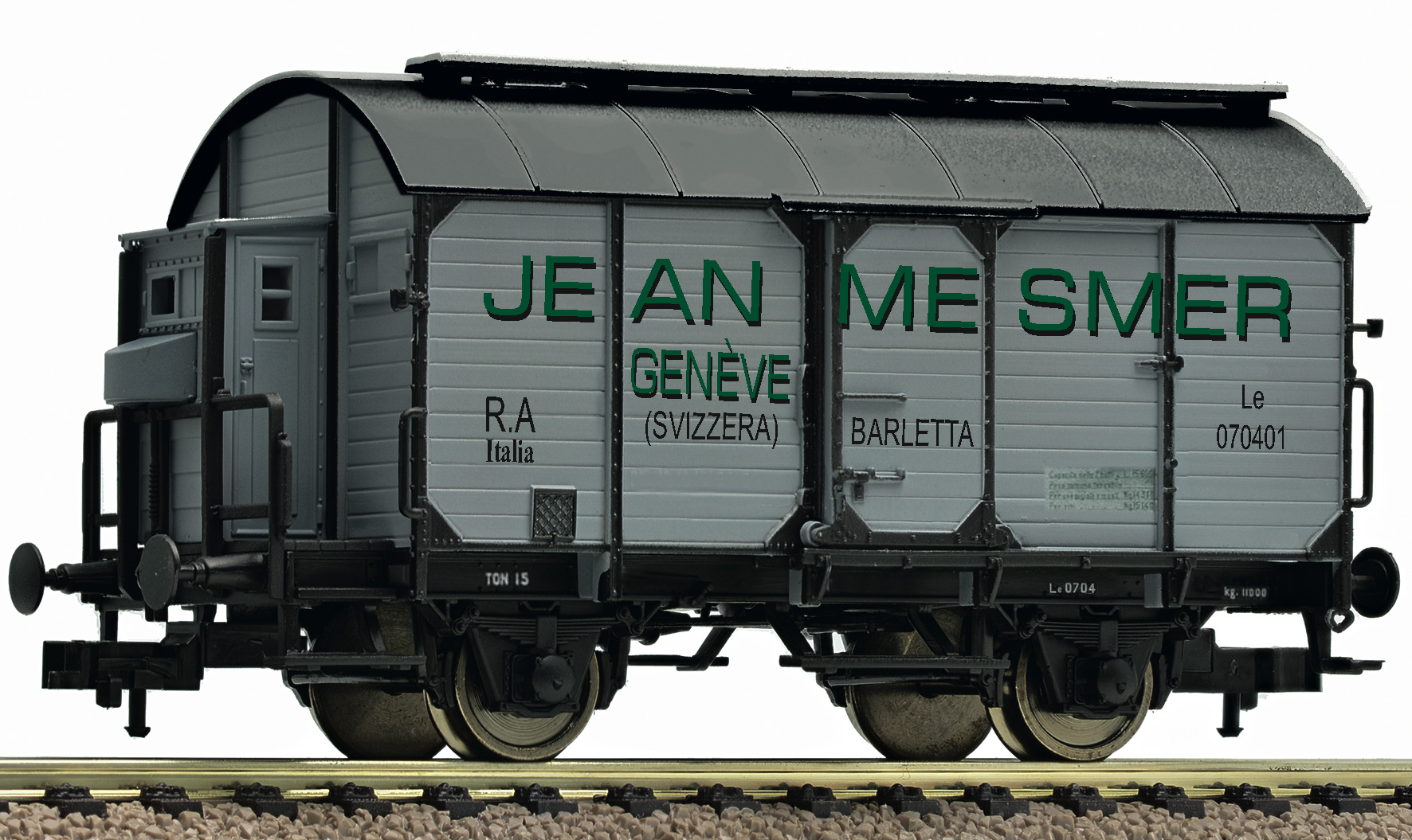 The model has two moveable sliding doors. Replica of the wine tank. Close coupler motion link and close coupler pocket according to NEM 362 standards.
