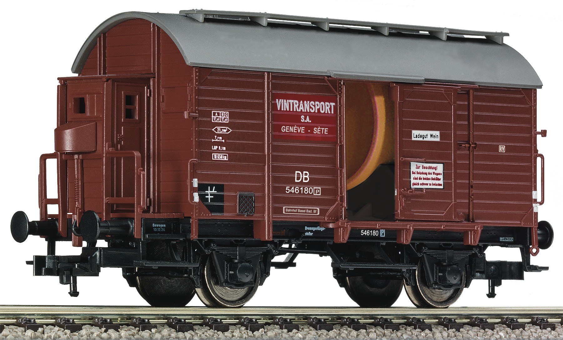 Model with two moveable sliding doors and replica of wine the barrel. Coupler pocket according to NEM 362 and close coupler motion link.