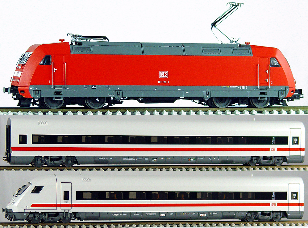 Set consists from Electric locomotive BR 101, Traveler car type Apmz 116.0, Driving trailer/Club car type Apmbzf 116.8