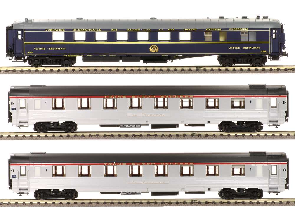 Set of 3 passenger cars Mistral 56 in TEE livery Paris-Lyon