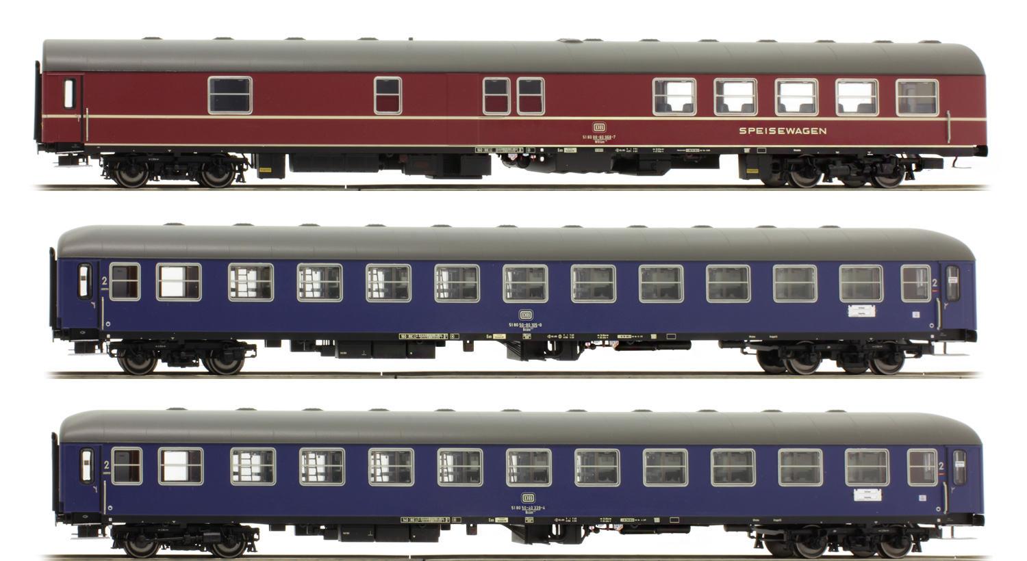 Set consists from two Passenger cars 2nd class type Bcum 243 and Restaurant car type WRtum 134