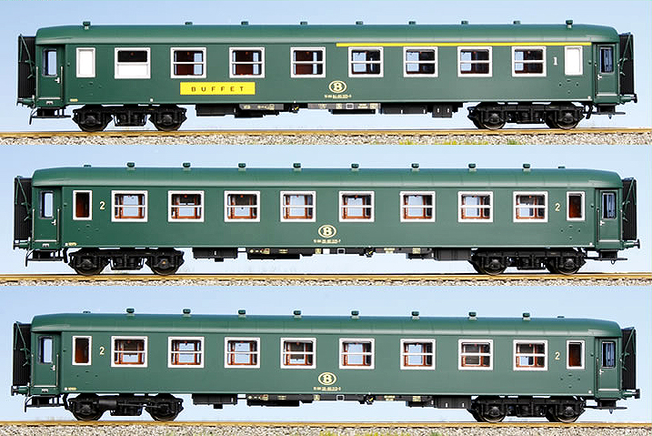 Set consists from Passenger car type A4R 1st class with buffet and 2 Passenger cars type B8 2nd class