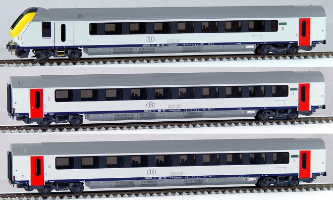 Set consists of Driving trailer type BDx and 2 passenger cars 2nd class type B.