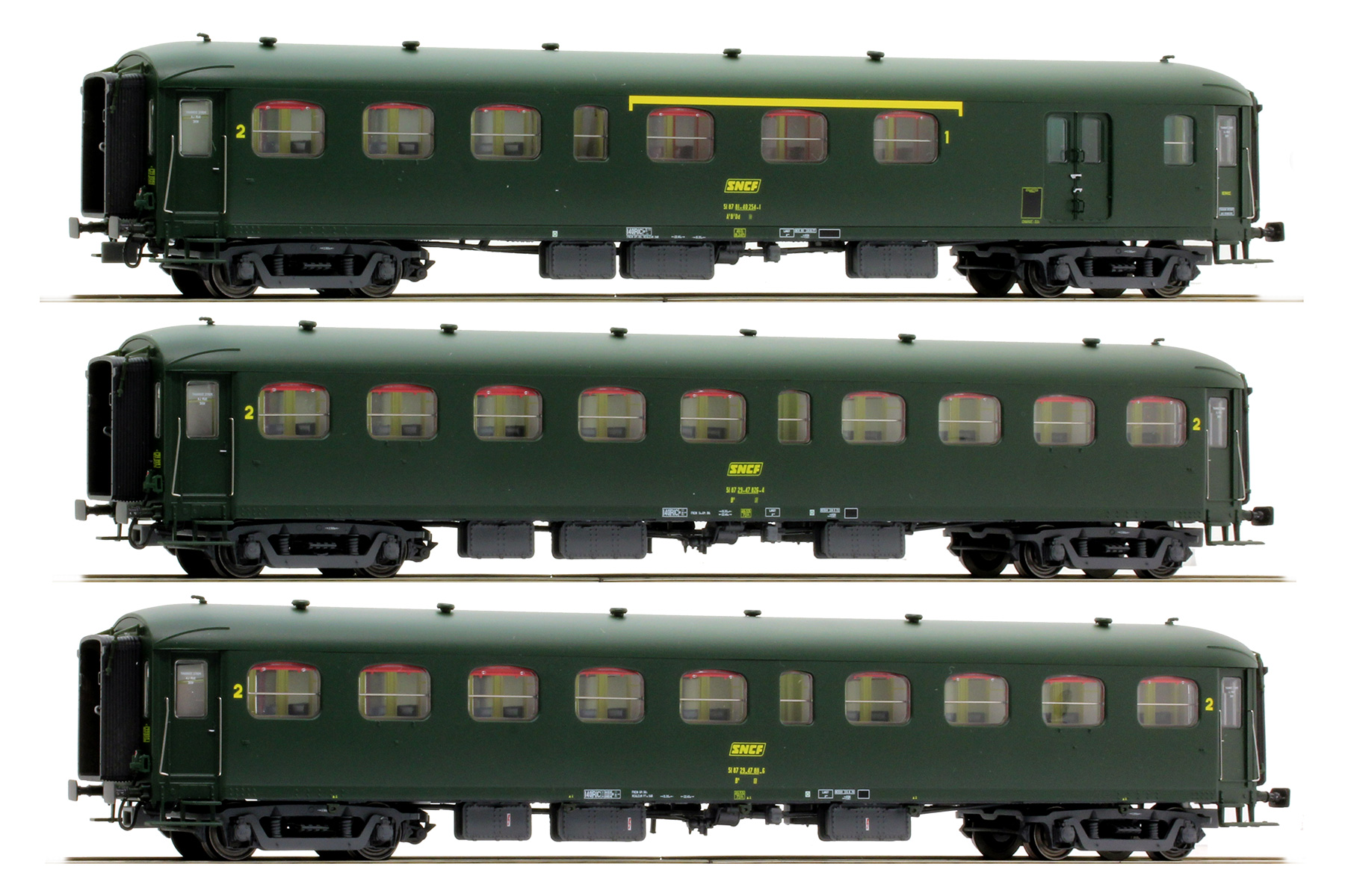 Set of 3 Passenger cars type Rapide Nord consists from Passenger car type A3B3Dd 1st/2nd class with baggage compartment and 2 Passenger cars type B9 2nd class