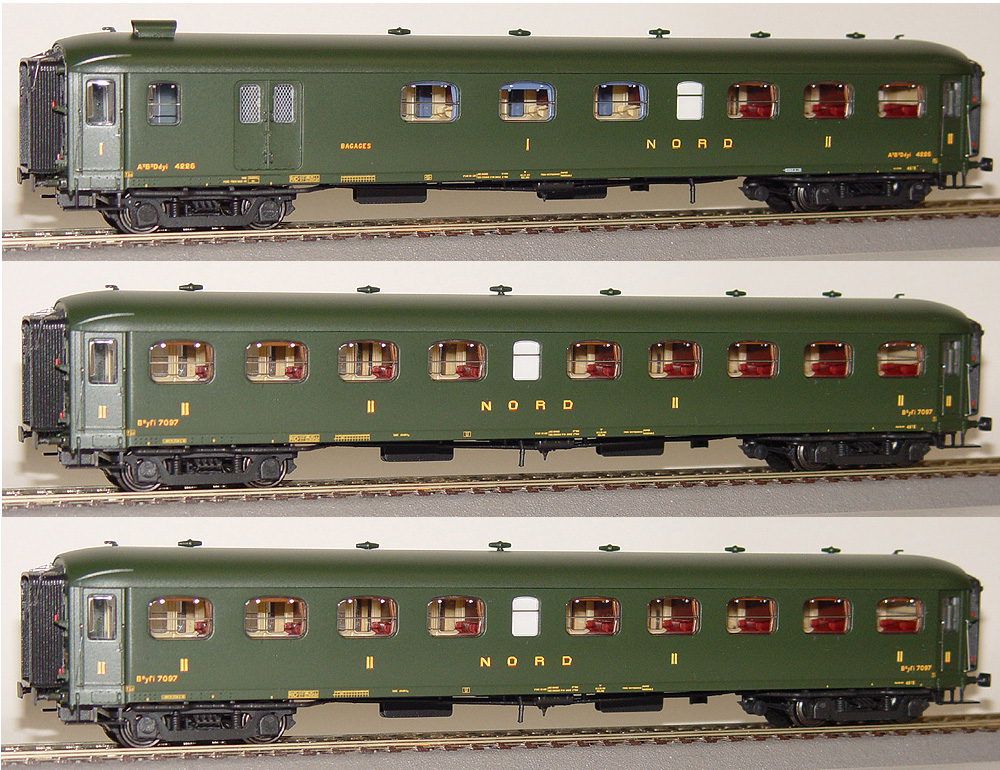 Set consists from Passenger car type A3B3Ddyi 1st/2nd class with baggage compartment and 2 Passenger cars type B9yfi 2nd class