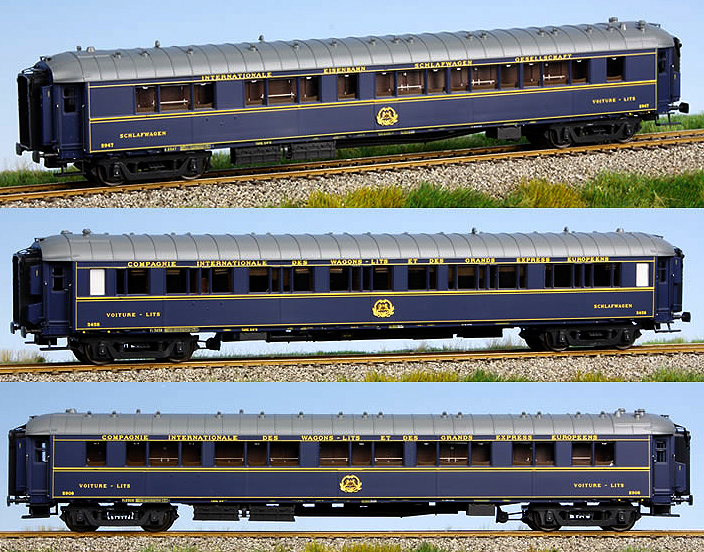 Set of 3 Passenger sleeping cars type S in 1960 livery consists from car type WL S2T (SNCF), car type WL StU (OBB) and car type WL S1T (SNCB)