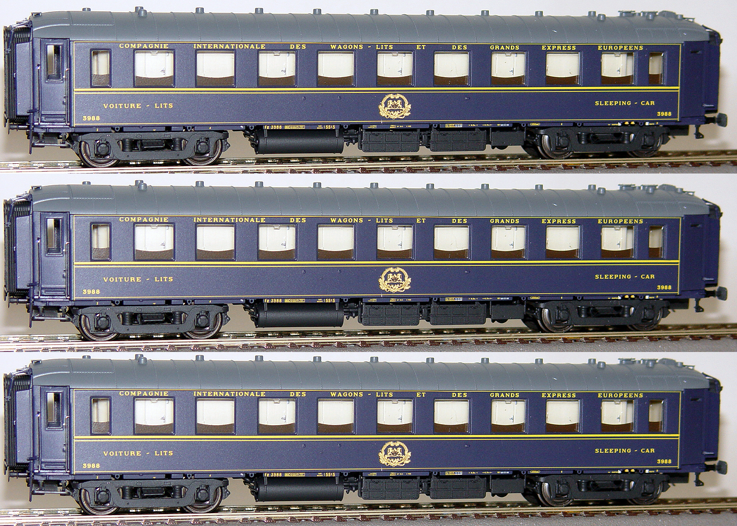 Set of 3 Passenger sleeping cars type WL F of CIWL in 1956 livery