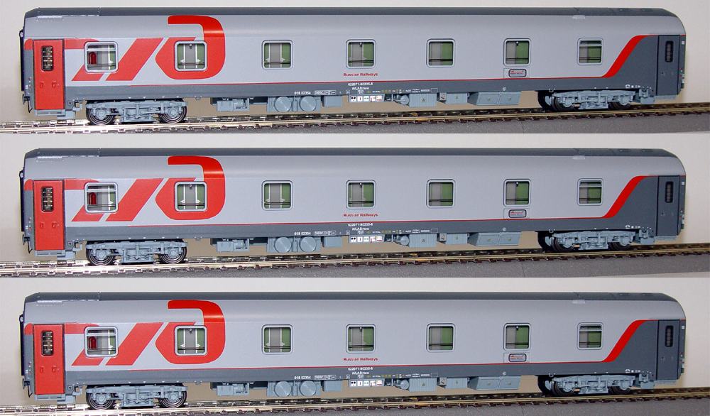 48027: SET OF 3 PASSENGER SLEEPING CARS TYPE WLABMEE OF BERLIN-MOSCOW TRAIN IN LATEST LIVERY (SET 1)