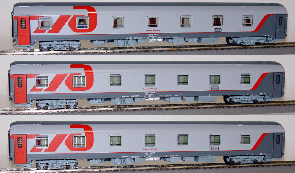 48030: SET OF 3 PASSENGER SLEEPING CARS OF MOSCOW-NICE TRAIN IN LATEST LIVERY (SET 2)