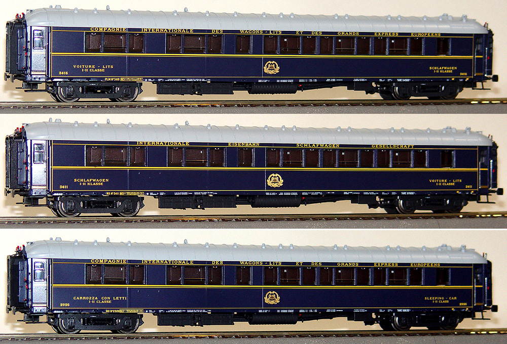 Set of 3 Passenger sleeping cars type S of CIWL in 1935 livery