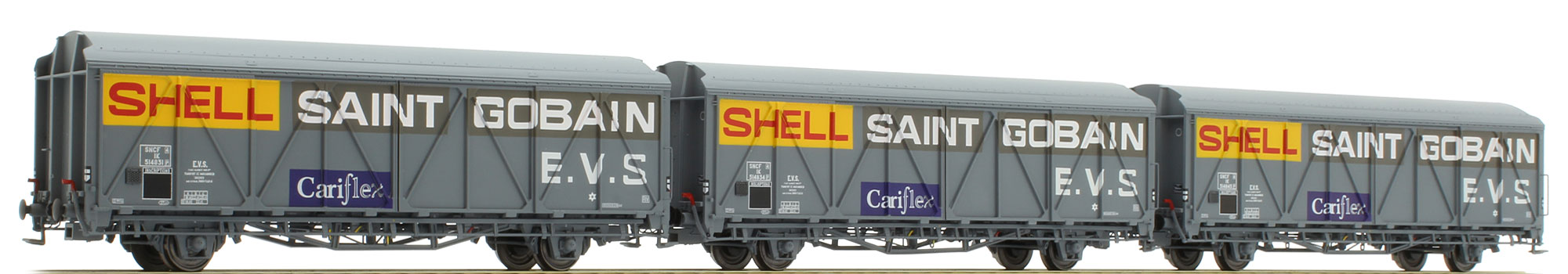 Set of 3 slide wall box cars SHELL SAINT GOBAIN type IK